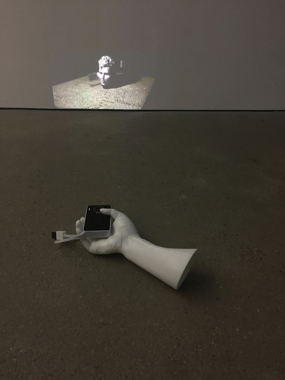 3D printed hand 268.0 x 99.7 x 104.9 mm, portable projector Philips PicoPix, 3D animation loop